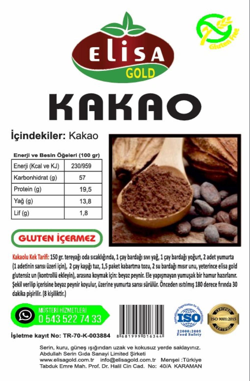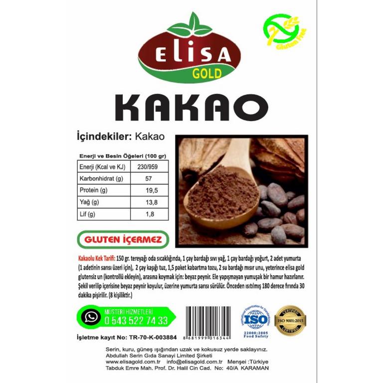 Elisa Gold Glutensiz Kakao, saf kakao çekirdeklerinden üretilmiş katkısız bir kakaodur. Glutensiz yapısıyla çölyak hastaları ve glutene duyarlı bireyler için güvenli bir seçimdir. Yoğun aroması sayesinde kek, kurabiye, sütlü tatlı ve içeceklerde mükemmel sonuç verir.