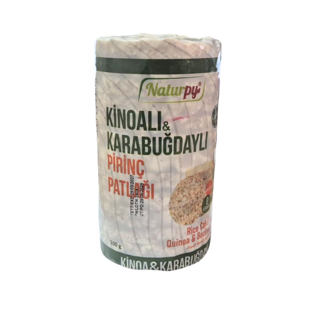Naturpy Glutensiz Kinoa ve Karabuğdaylı Pirinç Patlağı 100 g, çölyak hastaları ve glutensiz beslenen bireyler için özel olarak geliştirilmiş, kinoa ve karabuğday ile zenginleştirilmiş besleyici bir atıştırmalıktır.