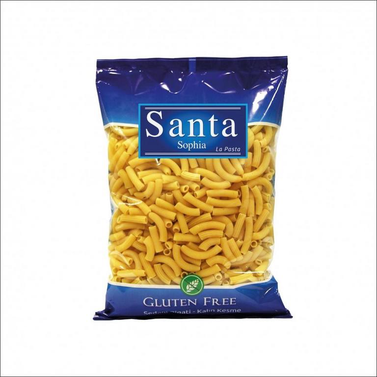 Santa Glutensiz Kalın Kesme Makarna, pirinç unu, prejelatinize mısır nişastası, mısır unu ve tapyoka nişastasının özel karışımıyla üretilen; pişerken dağılmayan, geleneksel lezzeti koruyan %100 glutensiz bir makarnadır.